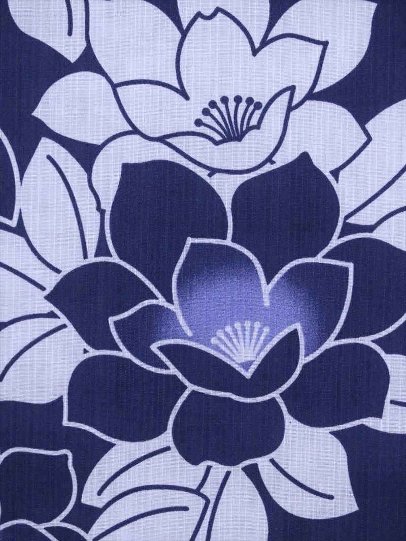 • 浴衣 反物 クインサイズ No.49  ツツジ柄・濃紺地(3)浴衣 反物 クインサイズ No.49  ツツジ柄・濃紺地(3)