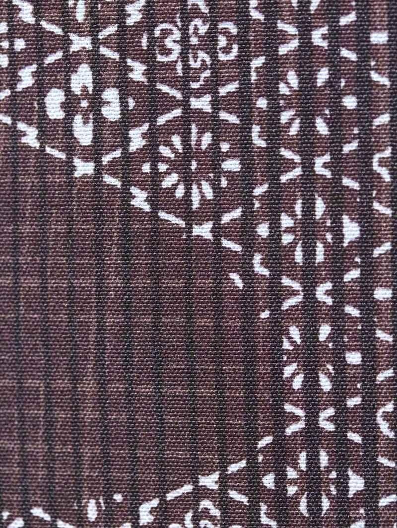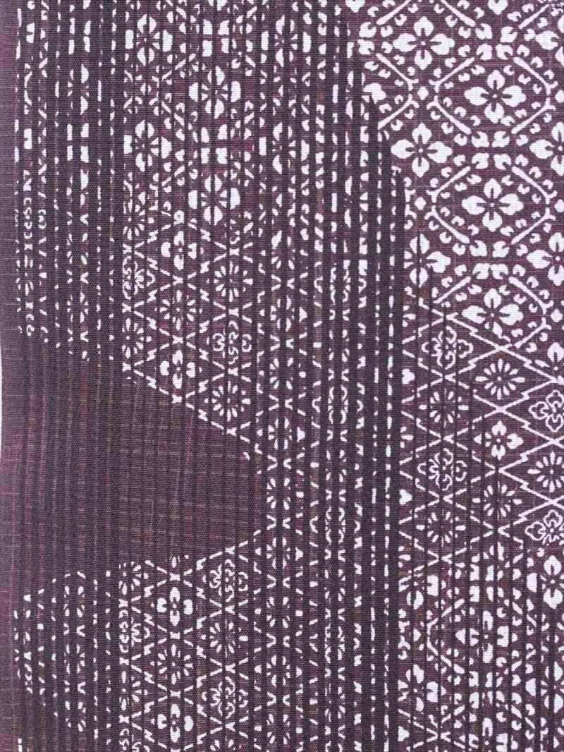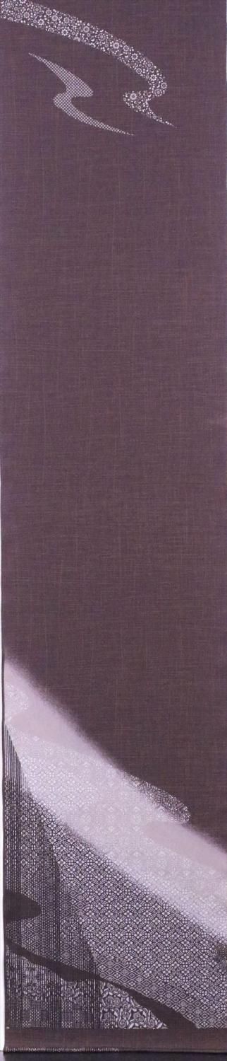 付下げ・反物・未仕立て品・ポリエステル100%・長さ12m・生地巾38.5cm・変わり織り(拡大写真参照)・片面染め・耳有り・日本製。きもの・洋装・インテリア・和雑貨・民芸品等の材料にご利用下さい。地色は紫がかったこげ茶地です。※お手元に届きまして、イメージと違うようでしたら、裁断される前に至急ご返送ください。