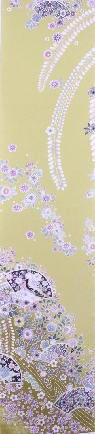 ホーム » 付下» ポリエステル 洗える 付下 反物 No.54 扇面柄・鶸(ひわ)色・訳あり