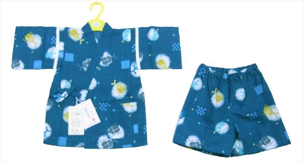 ホーム » 子供甚平» 子ども甚平 kjb-20 男の子 かぶと虫 クワガタ 青緑地 100cm