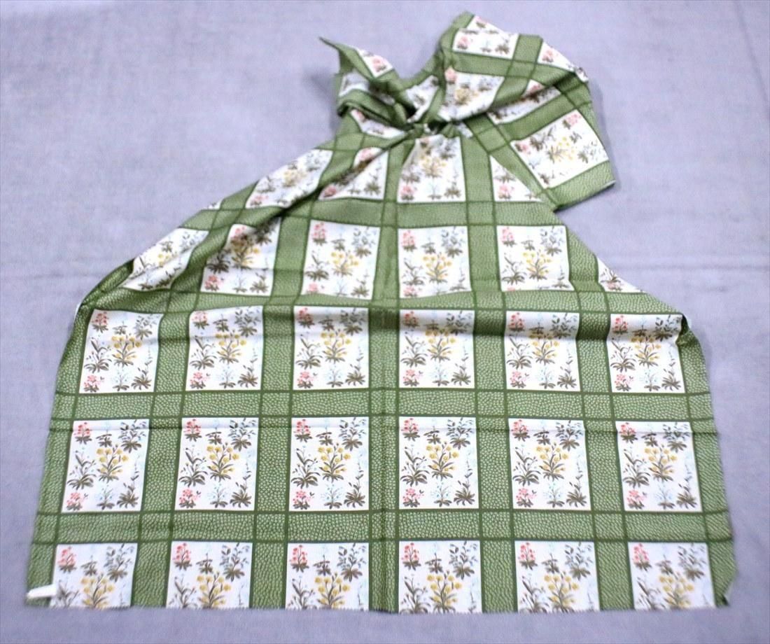• ふとん 表生地   No.45   苔色地・草花柄  【訳有り】(3)ふとん 表生地   No.45   苔色地・草花柄  【訳有り】(3)