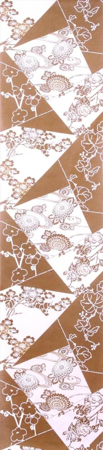 浴衣 反物 綿絽 No.196 梅・菊柄・桑茶地