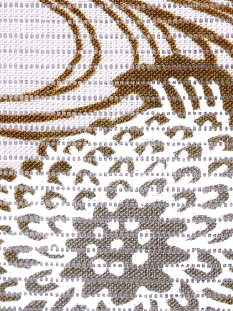 クインサイズ浴衣・反物・未仕立て品・綿100%・長さ12m・巾40cm(クインサイズ)・変わり織り(拡大写真参照・綿絽)・捺染(片面染め)・耳なし(耳がほつれにくい特殊樹脂ガミング加工済)・浜松産。ゆかた・洋装・各種シャツ・インテリア・のれん・カバー類・袋物・民芸品等の手芸の材料にご利用下さい。地色は濃い黄土色です。お手元に届きまして、イメージと違うようでしたら、裁断される前に至急ご返送ください。